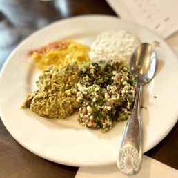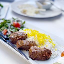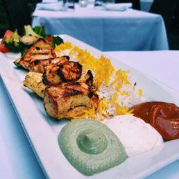 Had a great experience. We sat outside on the little patio. Service was friendly and attentive. I ordered the Albariño wine - which was delicious. We skipped straight to entrees - chicken and filet kabobs. It came with veggies, LOTS of rice, and some great dipping sauces - apricot, garlic cream, and jalapeño mix. Lots of food. Very comfortable outside with heaters. Great service.